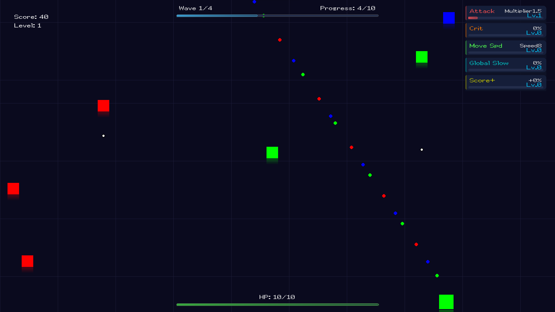 Higher waves and larger enemies have increased attack speed, health, and movement speed